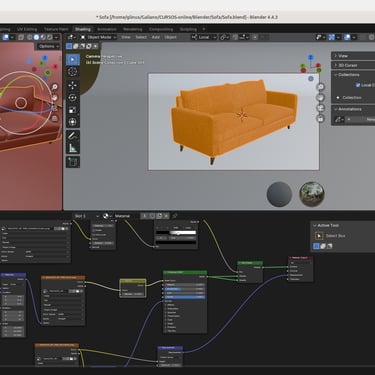 Questo progetto in Blender riflette il mio approccio alla progettazione 3D, dalla modellazione precisa del divano all'applicazione di texture e materiali con nodi.